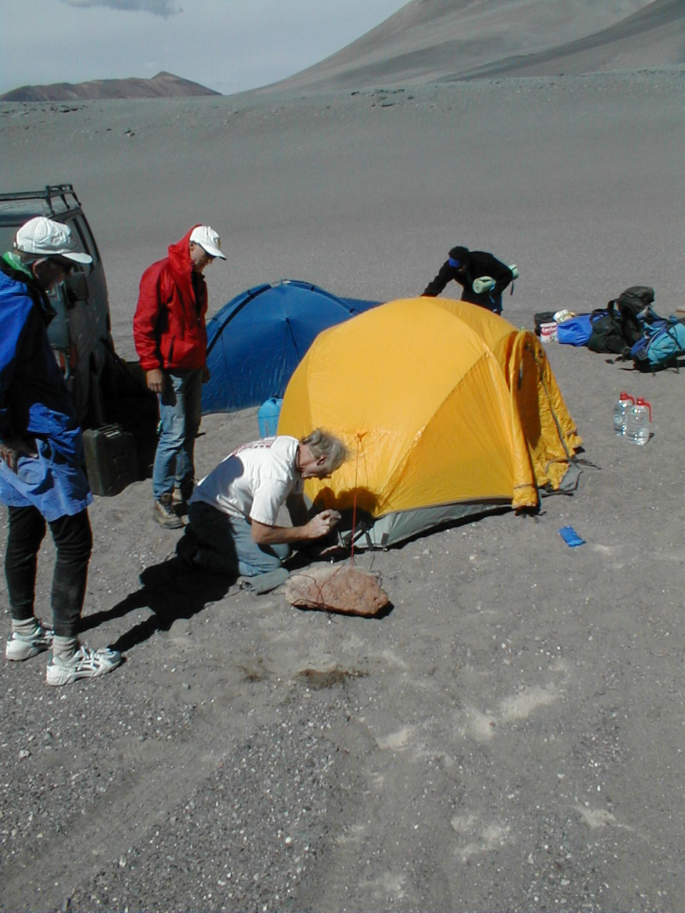 Pre- Basecamp How many climbers does it take to drive a tent peg?