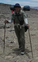 Bob organized the trip, he got the maps and permits and arranged our transportation and lodging. He is a Senior Scientist at Adobe Corporation. Bob has been mountaineering for over 30 years. He is a member of the Sierra Peaks Section of the Sierra Club where he recently achieved Emblem status in the SPS. Bob has climbed Mt. Vinson, the highest peak in Antarctica. He is an expert in climbing runnout friction slabs, a skill we probably won't need in the Andes. Bob trained by climbing the stairwells in the Adobe skyscrapers wearing ankle weights and a pack. He joined with Paul on a weeklong backpack on the Sierra high route in July and another through the Wind River Range of Wyoming in August.